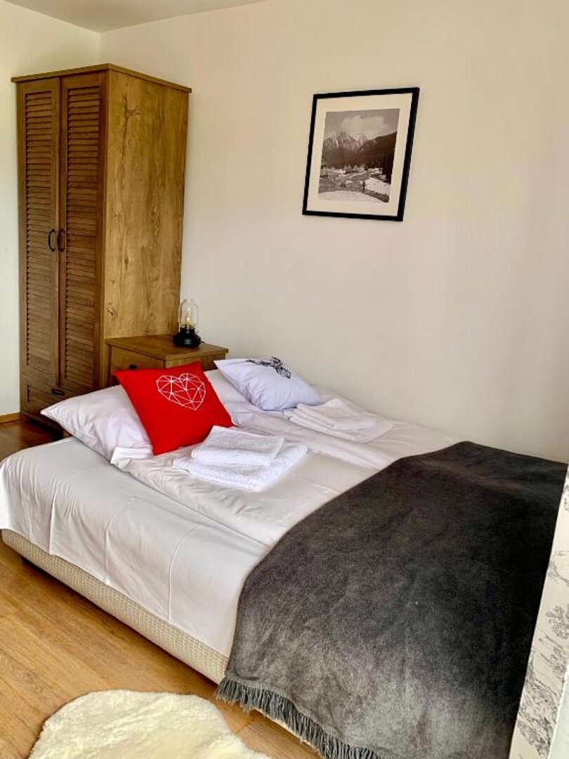 I piętro, pokój południowy, wspaniały widok na całe Tatry. Dla 2-3 osób. Łazienka, duży balkon, Internet, TV. Dwuosobowe łóżko oraz pojedyncze łóżko