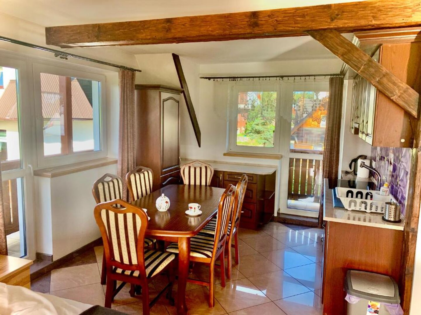 Pokój dwuosobowy z aneksem kuchennym oraz z prywatną łazienką z prysznicem oraz tarasem