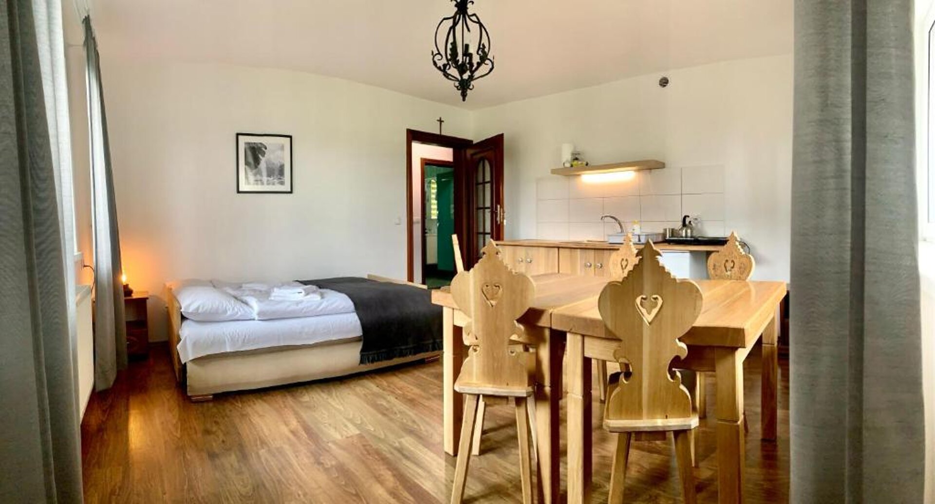 Pokój dwuosobowy z aneksem kuchennym i widokiem na góry